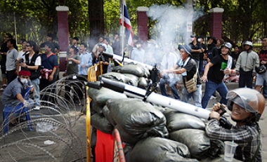 中新网5月14日电 据外电报道,泰国军队14日中午向聚集在曼谷隆比尼集市的“红衫军”示威者发射催泪瓦斯。