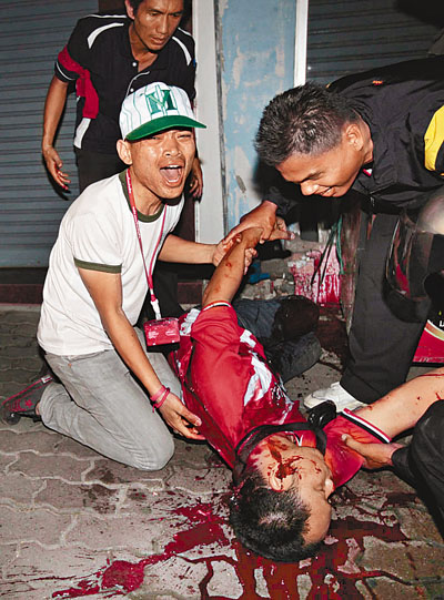 纳塔武对记者说:“阿披实已为内战揭开序幕了。我们紧急要求政府撤军,停止一切暴力行为。如果阿披实不同意停火,我不知道我们能否活过今晚。我们希望阿披实不想要战争。”