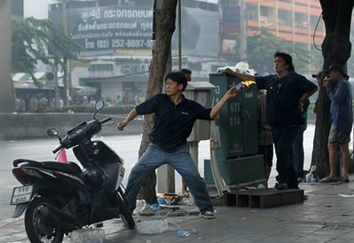 示威地点靠近金融区的是隆路与拉玛四路也有抗议人士焚烧垃圾车和轮胎,挑衅镇暴部队。位于拉玛四路的隆比尼拳击场,军队也遭M79榴弹攻击,军队再鸣枪示警,红衫军愤而焚烧公共电话亭。
