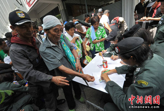 多数从北部、东北部来的这些抗议村民,许多人腋下夹着卷好的铺盖,或提或背电风扇、锅碗瓢盆,接受军人的严密检查、登记身分后回家。