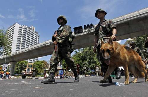 由于军方早前在四季酒店内曾经发现爆炸品,军队带同犬只搜索红衫军有没有留下危险物品。泰国军方表示,恢复曼谷市面秩序的行动于下午4时结束,之后清扫街道等工作将移交给曼谷市当局。此外,军队和民众21日早上开始对除拉差巴颂地区以外的红衫军集会地区的街道进行清扫,拆除路障。