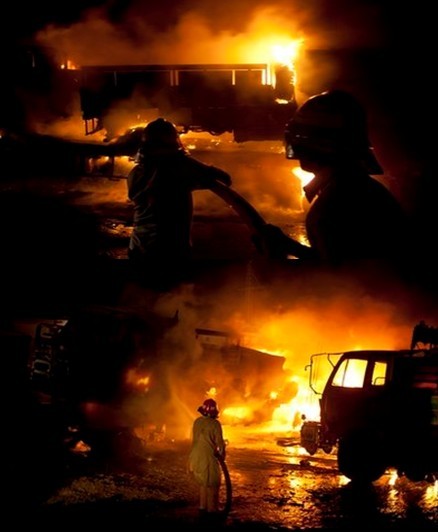 武装分子先使用枪支及手榴弹等武器,对车队开火,打死7人,造成另外7人受伤。随后,武装分子纵火烧毁车辆,一共有10多辆车被付之一炬。目击者称,大约有20个集装箱起火燃烧。由于轮胎燃烧,油罐起火,现场发生一系列爆炸。