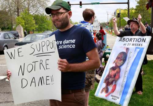 据报道,奥巴马支持堕胎和胚胎干细胞研究立场,触发天主教保守派人士和师生不满。一些活动人士早已誓言干扰奥巴马在该地的演讲。