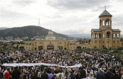 26日是格鲁吉亚的独立日。当天的示威活动主要在位于市区的派恰泽国家体育场举行,但稍后有大量示威者在街道上游行,前往第比利斯最主要的教堂。