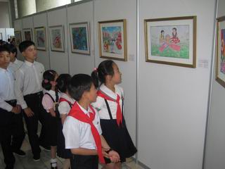 中新网6月4日电 据中国驻朝鲜大使馆网站报道,由朝鲜对外文化联络委员会、朝鲜金日成社会主义青年同盟、上海市对外文化交流协会共同主办的《中朝友好年——中朝两国少儿书画展》于6月1日“国际儿童节”在平壤的万景台少年宫隆重开幕。