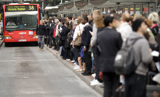 中新网6月11日电 伦敦地铁工人10日举行罢工,导致数百万伦敦人面临上下班受阻,有人改搭船、巴士,有人骑单车,有人冒雨走路。