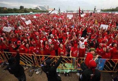 这些被称为红衫军的示威者效忠于被放逐的泰国前总理他信。