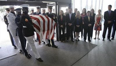 肯尼迪家族发言人表示,爱德华的遗体27日由寓所运到波士顿的约翰-肯尼迪图书馆,需时至少两个小时,途中经过多个对爱德华有重要意义的地方,周五开放给公众瞻仰,翌日将安葬于阿灵顿国家公墓,毗邻他的胞兄约翰和罗伯特的墓地。