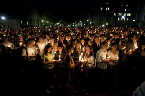 校内学生周一晚为死者举行烛光守夜,校方请来心理专家为有需要的学生进行心理辅导。