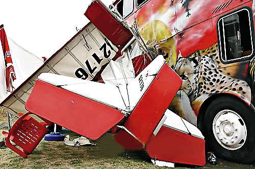 事发于首尔西面的仁川,当时正举行“2009仁川世界城市庆典”。活动公关表示,该架飞机当时正为另一个活动飞行,突然撞落庆典上一架展览中的巴士。警方称,天上布满装饰风筝可能是令飞机坠毁的原因。机上两名机师随即送院,其中一人不治,另一人轻伤。