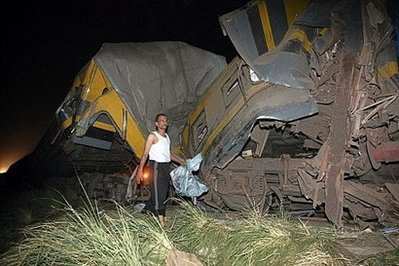 一列预定前往南方阿斯旺(Aswan)的火车,24日行驶到开罗附近40公里的吉萨(Giza)时,遭另一列火车从后方追撞,造成其中一节车厢翻覆。由于出事地点靠近运河,救难人员必须以树干搭起克难的桥梁,将伤者从火车上救出。