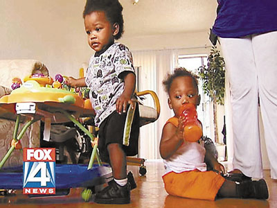 中新网5月19日电 美国得克萨斯州达拉斯一名20岁女子,于11个月前诞下一对双胞胎,两名男婴出生时间仅相差7分钟。离奇的是,这对双胞胎竟然“同母异父”。原来,该名女子怀孕时背夫偷汉,两粒不同卵子在短时间内分别受精,出现不同生父的双胞胎情况罕见,机率仅百万分之一。