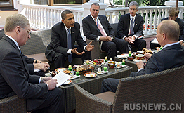 普京7日早上在自己位于郊外新奥加廖沃的官邸会见美国总统巴拉克·奥巴马。奥巴马7月6日抵达莫斯科进行工作访问。