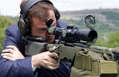梅德韦杰夫还参观了特种技术装备,如登山装备、热像仪和射击武器。
