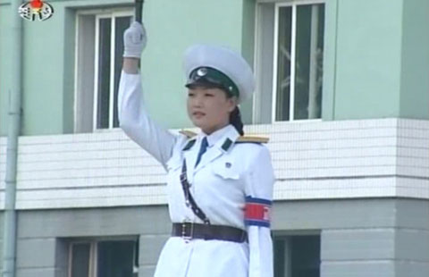 据悉,根据金正日的指示,朝方特地为女交通指挥员们设置了防晒的雨伞和冬天防止脚冻的交通指挥台。(王斯)