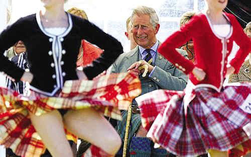 报道称,日前查尔斯首次在妻子卡米拉陪同下,到苏格兰北部高地出席贵族竞技赛。活动上,有女舞蹈演员起舞助兴,舞动时扬起了苏格兰裙露出黑色内裤和美腿,查尔斯看见后,一边微笑一边紧盯。