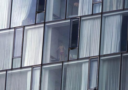 在美国纽约市新近开放的High Line公园内,矗立着Standard Hotel酒店, 该酒店房间面朝公园的一面被建造为落地玻璃窗,方便房客俯瞰公园景色,当然,酒店外的人也能透过玻璃窗清楚地看到房间里的景象。然而,许多房客不知出于什么原因,经常没有拉上窗帘,就进行各种私人活动,将一些裸露、猥亵、甚至粗野的行为都完整地暴露在公众的视线当中,让公园游客们大饱眼福。