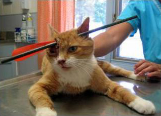 中新网9月4日电 都说猫有9条命,此话看来不假:美国一只小猫被一支箭贯穿头部,居然大难不死。