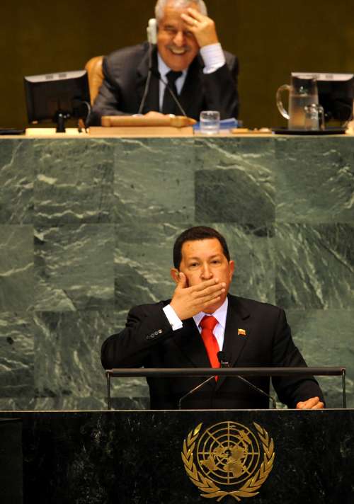他更打趣说:“奥巴马,来加入社会主义者行列吧,我们在此邀请你加入邪恶轴心国。”查韦斯促请奥巴马撤销对古巴实施的禁运,以及放弃在哥伦比亚建立美军基地。他在国内发表的演说往往是马拉松式的长篇演说,这次的联大演讲亦超过一小时,不过他保证自己不会说得像利比亚领袖卡扎菲那么长。此言一出,台下报以阵阵笑声;卡扎菲前一天的联大演说长达逾一小时半。