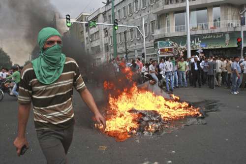 在十三日爆发的骚乱中,挥舞警棍的防暴警察与示威者爆发冲突,群众高呼“处死独裁者”,向警员扔掷石块,又放火焚烧警车和垃圾桶。大批警员驻守在内政部周围,一幢银行建筑物严重焚毁,通往德黑兰大学学生宿舍的道路被封锁。