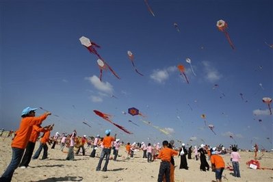据联合国网站报道,这一项目的发起者,联合国近东巴勒斯坦难民救济和工程处表示,当天共有6000多名参加活动的加沙儿童放飞了3000多只风筝。