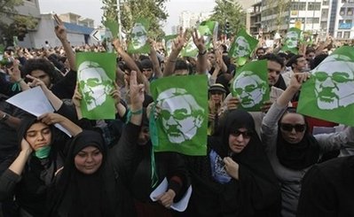 18日,几万名佩戴绿色标志物的穆萨维支持者,高呼口号向德黑兰一个主要广场出发,参加一年一度的“圣城(耶路撒冷)日”集会。“圣城(耶路撒冷)日”是伊朗每年举行的反对以色列、支持巴勒斯坦的大会。伊朗总统内贾德将在此次大会上发表演讲。