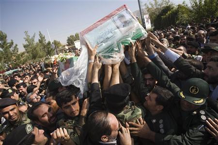 几千名伊朗人,大部分为军人,参加了在德黑兰革命卫队基地举行的葬礼,人群高举遇难将领与最高精神领袖哈梅内伊的巨幅照片。