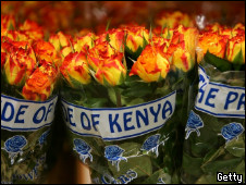 在非洲的肯尼亚,蔬菜和鲜花是肯尼亚的主要出口商品,占该国经济收入的百分之二十。奥塞林农场是肯尼亚最大的鲜花农场之一,每天出口一百多万枝玫瑰。但是今天这里的工人没有象往常那样忙碌地包装鲜花,却在拆开玫瑰花的包装盒。这些玫瑰本来在装箱后应该运往欧洲的市场。