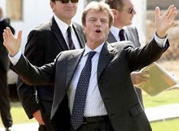 什么场合,这么热闹?摄影机围着一圈宾客猛拍,想里头一定有大人物。原来抢新郎新娘风采的,就是这位西装笔挺的法国外长库什内(见图)。