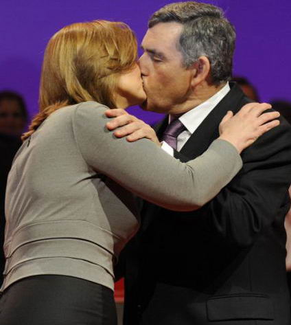 布朗夫人登工党大会讲台献吻。