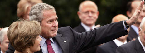 白宫雇员可以看到布什的头发在八年后已变得“更加灰白了”。布什对白宫雇员们说:“我知道你们的感觉,但在从现在到那时,我们必须将注意力集中在手头上的工作,因为美国人民期待我们这样作。当我们进入最后阶段时,我请求你们继续将注意力集中在目标上。”布什在说到这句话时情绪显得有点激动,他说:“愿上帝保佑你们。”他随后将头扭向一边,劳拉给了他一个小小的拥抱。