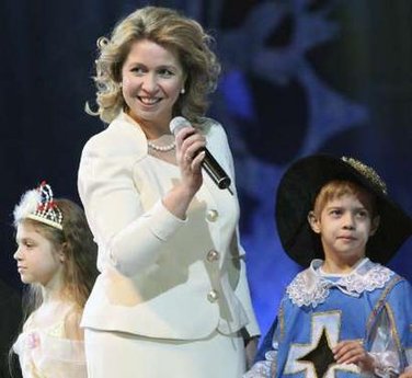 中新网12月30日电 据星岛环球网报道,俄罗斯第一夫人斯维特拉娜-梅德韦杰夫日前出席了在克里姆林宫举行的新年晚会,与孩子们在一起的她显得光彩照人。远离政治的斯维特拉娜在时尚界颇有名气,还热心公益。