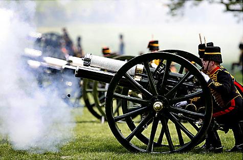 为庆祝英国女王伊丽莎白二世83岁的生日,英国皇家骑兵炮兵连在伦敦海德公园鸣放41响礼炮,来为女王庆生。这一天女王和丈夫菲利普亲王待在温莎城堡,没有公开的行程。