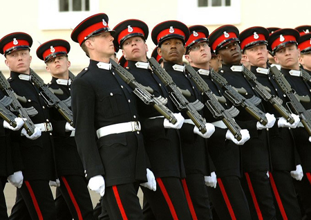 桑德赫斯特皇家军事学院学员在进行队列训练。