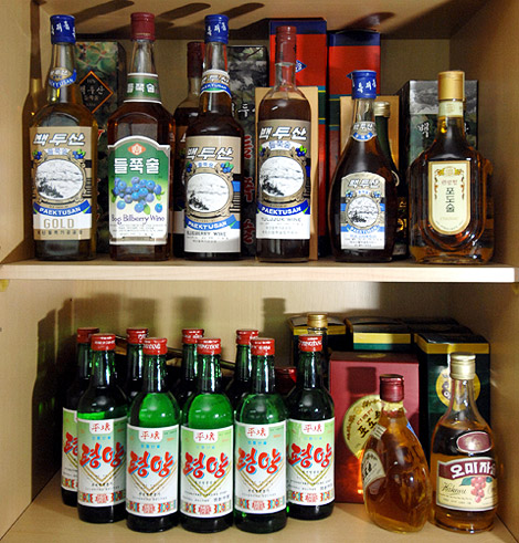 朝鲜的各种酒类。下边的是平壤烧酒。