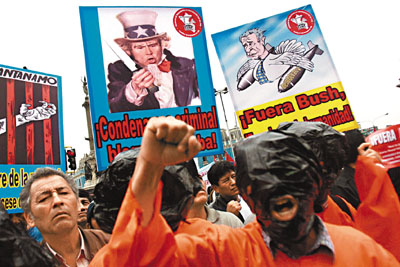 约1000人走上利马市中心街头示威,他们认为布什是全球经济危机的始作俑者,大喊“布什滚蛋”。