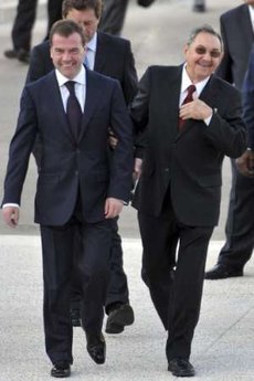 梅德韦杰夫同古巴国务委员会主席劳尔·卡斯特罗在一起。