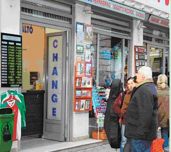 匈牙利福林对欧元的汇率21日跌破300。由于汇率暴跌,首都布达佩斯的许多持有美元的居民纷纷到货币兑换点换钱,成为该市一道独特的风景。同一天,在布达佩斯南部最大的电子商城赛腾,由于家电产品大降价,前来购买家电的人们排起了30米的长队。商场职员介绍说:“人们认为在本周福林继续下跌前购置商品可以获利,因此蜂拥而至。我们已经取消了部分商品的减价活动,我觉得今后我们会把欧元作为标价币种。”