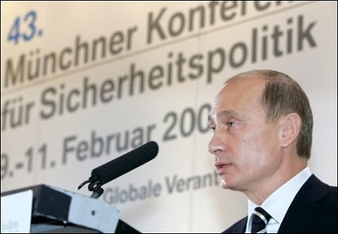 普京在德国慕尼黑举行的全球安全会议上说:“美国在各个方面都逾越了它的国界。”他还对北约东扩提出了批评,还抨击了有关在波兰和捷克建立美国导弹防御系统的计划。