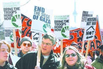 加拿大今天也出现示威活动。当地电视台报道,多伦多大约有1000人抗议议会上周作出的延长在阿富汗驻军的决定。