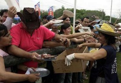中新网10月27日电 综合报道,超过3万巴拉圭人26日聚集首都亚松森一处巨大的露天烤肉场,参加盛大的烤肉活动。