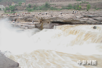 中新网临汾5月23日电 参加第二届网络媒体山西行的记者、编辑23日来到位于山西吉县的壶口瀑布,领略大自然的所赋予的中华民族母亲河“咆哮”的壮观。