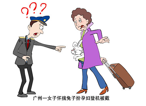 新闻浮世绘:广州一妇女怀揣兔子扮孕妇登机被拒