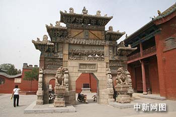 现庙坐北向南,总面积1.8万多平方米,内外古柏苍翠,百花争艳。平面布局分南北两部分。 南为鸨义园,由牌坊,群子亭,三义阁,假山等组成、亭内有线刻结义图案一方。四周桃林繁茂,大有三结义的桃园风趣。北部为央,分前后两院。前院以端门、雉门、午门、御书楼、崇宁殿为中轴、两侧配以石坊、木坊、钟鼓楼、崇圣寺、胡公祠、碑亭、钟亭等;后院以“气肃千秋”牌坊为屏障,春秋楼为中心,刀楼印楼为两翼,气势雄伟。前后院自成格局,但又是一个统一的整体。前后有廊屋百余间围护,形成左右对峙而又以中轴线为主体的我国古建筑传统风格。 布局严谨,规模完整,建筑以春秋楼和崇宁殿最为精致。