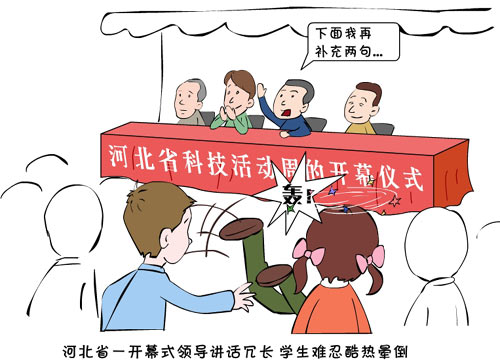 新闻浮世绘:领导讲话冗长 台下学生难忍酷热晕倒