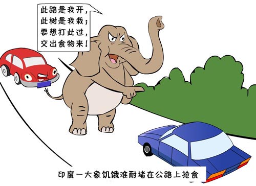 新闻浮世绘:印度一大象饥饿难耐在公路上抢食