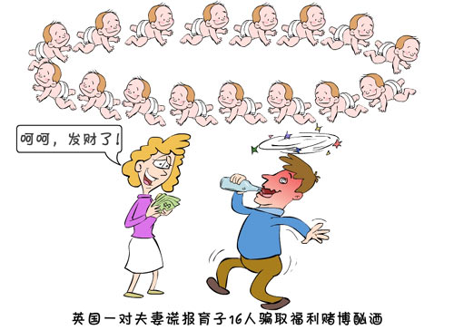 英国一对夫妻谎报育子16人骗取福利赌博酗酒