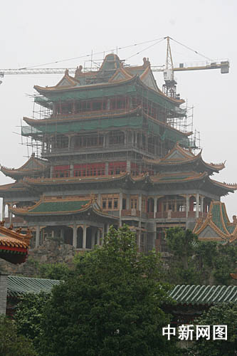 记者看到,目前轮廓已成的该景区既有北方皇家园林之雄,又有南方私家园林之秀,用一池三山的形式表现长生不老的愿望,分和气大殿、蓬莱仙岛、方壶胜境、瀛洲仙境、瀛洲书院、艺术博物馆、大水法、玉佛寺、万方安和、大剧院十大景观,同时还建有休闲度假配套设施。