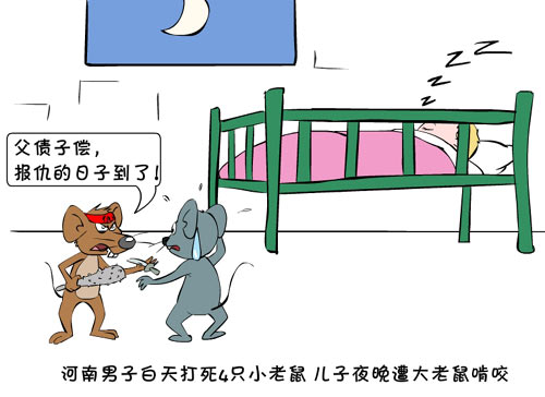 河南男子白天打死四只小鼠 儿子夜晚遭大老鼠啃咬
