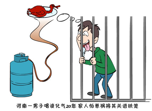 河南一男子喝液化气20年 家人怕惹祸将其关入铁笼